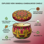 Immerse yourself in the soulful essence of ancient traditions with the Somana Handcrafted Mandala Sandalwood Candle. Featuring a stunning, hand-illustrated Mandala design, this candle is more than just a fragrance—it is a piece of art. Crafted with 100% pure soya wax and infused with authentic sandalwood essence, it provides a clean, therapeutic burn that calms the mind and centers the spirit. Whether for meditation, home decor, or a thoughtful gift, this 100g artisanal tin brings a touch of sacred elegance to any space.